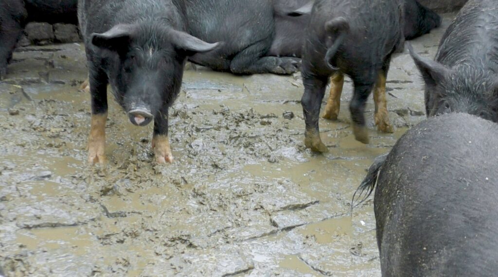 – Their excrement is collected in pools in the vicinity of the farm.
