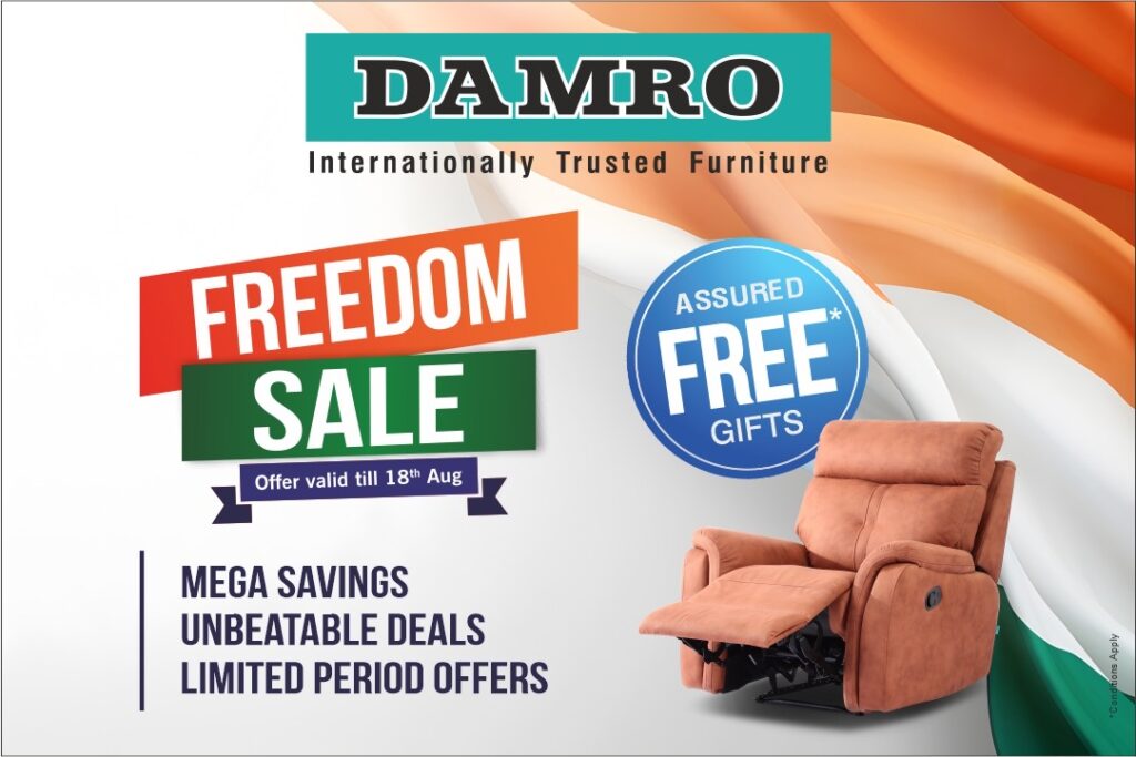 “The Freedom Sale is valid until August 18th, 2024, and promises exceptional value for customers across India. With a legacy of serving over 10 million happy customers and a strong presence in over 100 outlets across Karnataka, Andhra Pradesh, Telangana, and the eastern, western, and northern regions of India, Damro understands the unique needs of its diverse clientele”- said David Karambekar, Marcom Head Of Damro Furniture.
