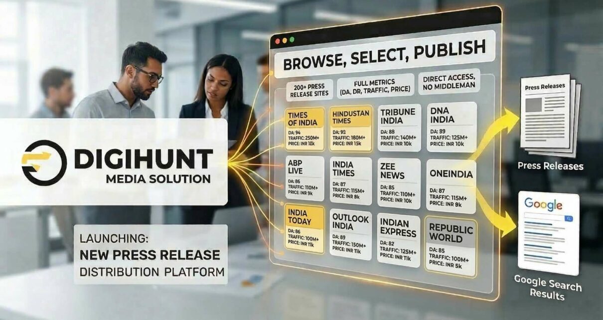Digihunt Media Solution has launched an online press release distribution platform, establishing itself as a full-service PR agency giving brands and marketing teams direct access to 200+ verified media sites across India and globally — without the opacity and overhead of traditional agency retainers.