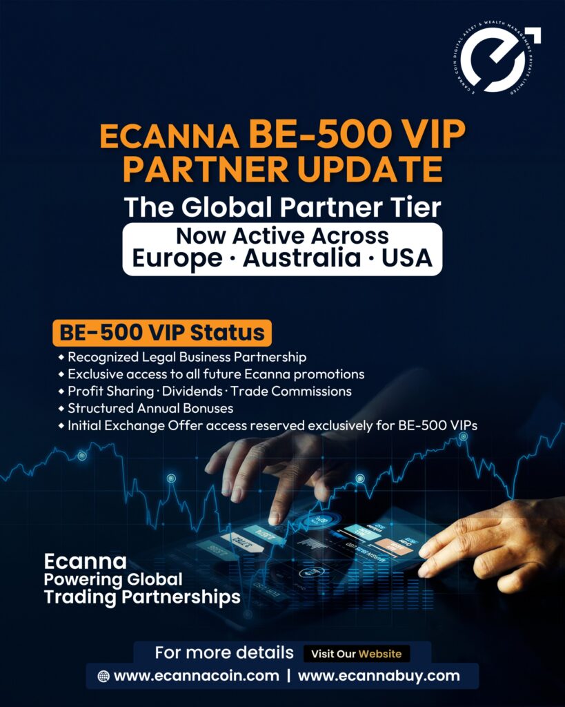 A New Standard for Partnerships, the BE-500 VIP Account is designed to streamline ECanna’s international expansion. This category is designed for those who wish to be more than just traders; holders of this account are recognized as Legal Business Partners of the company. Moving forward, all new company promotions, exclusive offers, and specialized services will be channeled exclusively through these account holders.