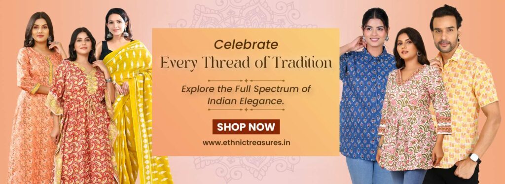 Ethnic Treasures, also called ET Ethnic Treasures, was borne through a simple yet powerful vision: authentic Indian cotton garments must be available, affordable and wearable at all times. As Indian prints and handcrafts rose to global acclaim, so did their price tags, pushing them out of the grasp of many. Ethnic Treasures is here to rebalance that equation.