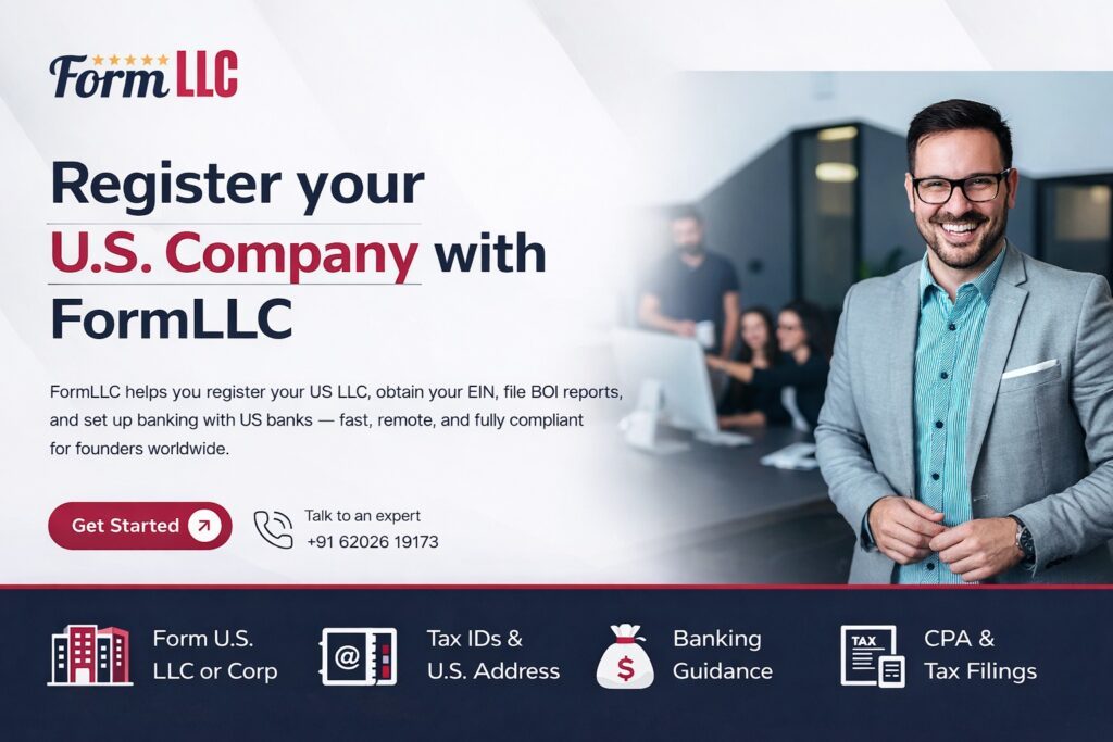 FormLLC specializes in U.S. company formation and compliance services for non-residents. The company provides LLC registration, EIN processing, BOI filing support, registered agent services, tax compliance assistance, and U.S. banking guidance — all delivered through a fully online system.