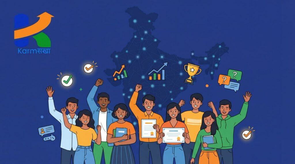KarmSakha (Jobs for Every Indian) is a Surat-based career technology platform connecting job seekers with opportunities across government and private sectors. The platform serves aspirants across all states and union territories of India with multilingual support and accessibility-focused design.