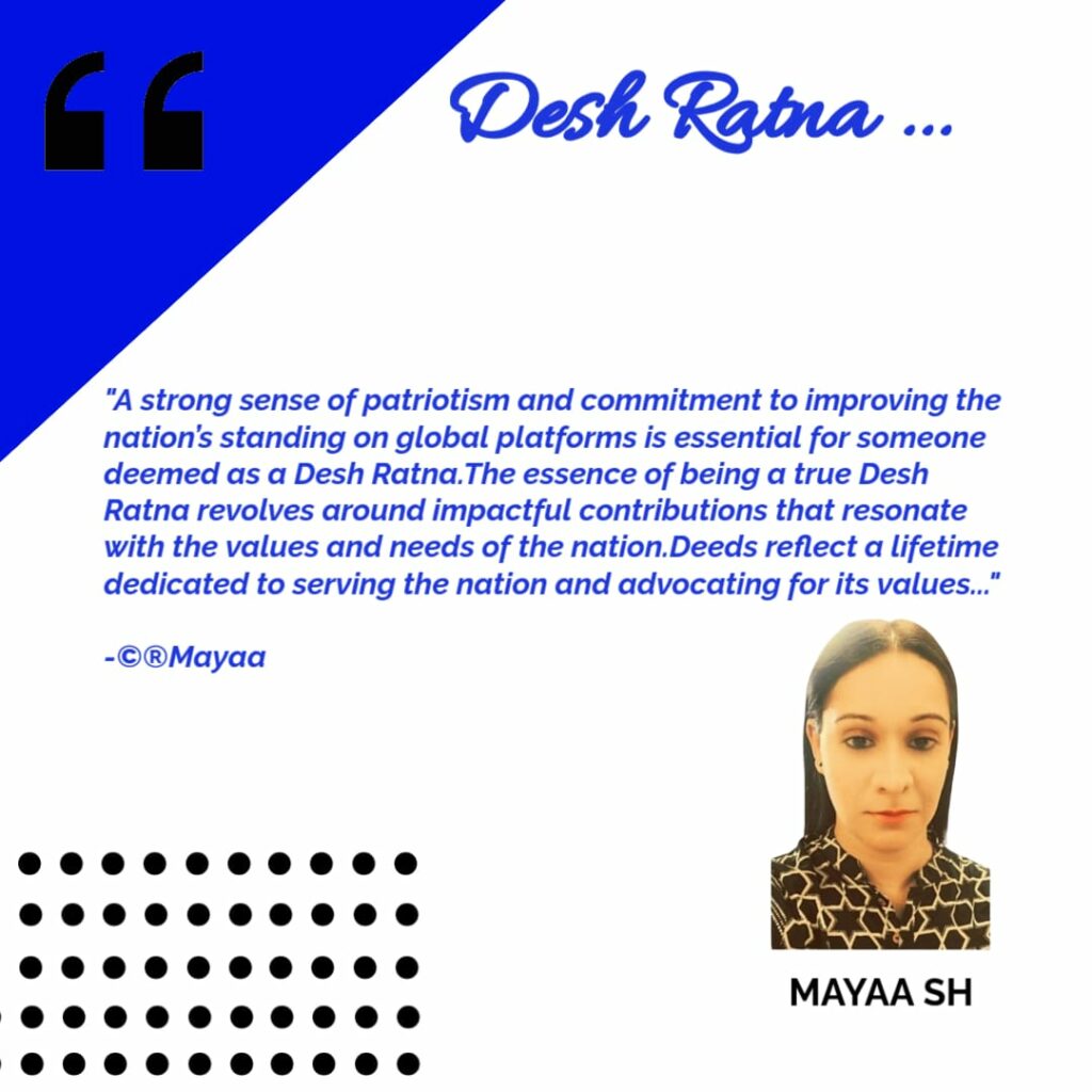 The title “Desh Ratna”, meaning Jewel of the Nation, is bestowed upon individuals who make significant contributions to their country. For Mayaa SH, the qualities of a true Desh Ratna include: