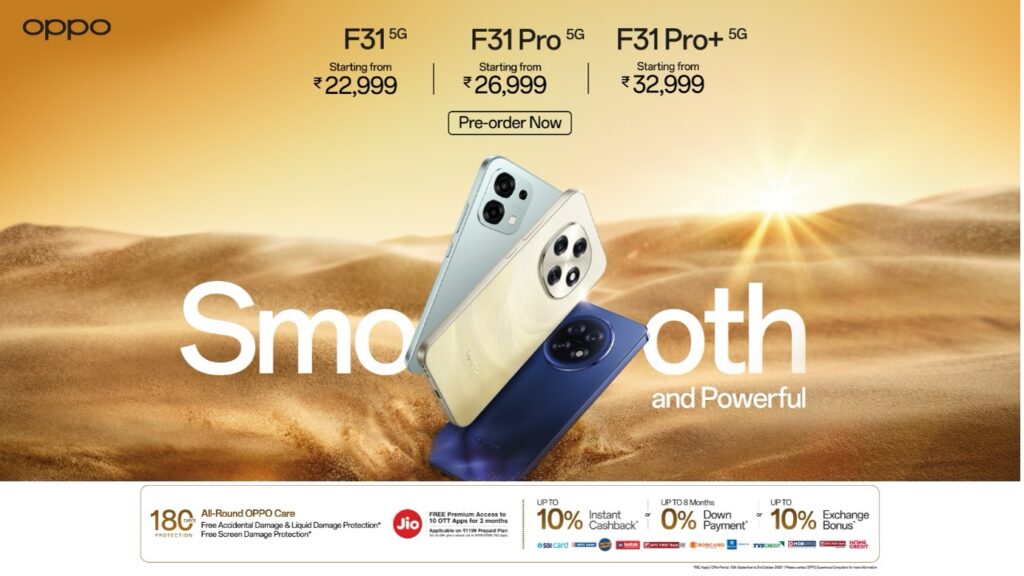 New Delhi, September 17, 2025: OPPO India has launched the F31 5G Series, the latest in its popular F line-up, designed to meet India’s demand for durability and smooth performance. The new series offers three models—F31 Pro+, F31 Pro, and F31 each engineered with stronger builds, long-lasting batteries, improved heat management, and advanced connectivity. With these upgrades, the F31 5G Series is positioned as the smoothest and most durable smartphone range under INR 35,000 in India.