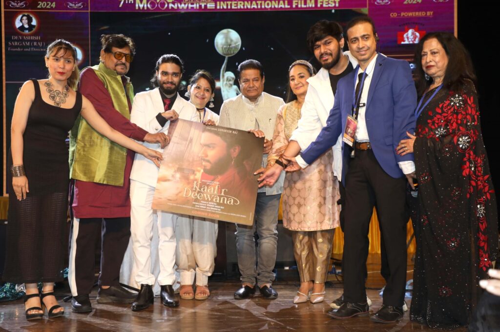 A key highlight of the evening was the Poster Launch of the music video ‘Kaafir Deewana’, unveiled by Anup Jalota, Jaspinder Narula, Dilraj Kaur and other esteemed guests. Produced by Shipra Raj Under the Banner ‘Moonwhite Films, the song is composed and directed by Devashish Sargam Raj, lyricist is Kumaar and the music production is done by Gaurav Singh. The artist Suharssh Raj, who also stars in the video, enthralled the audience by performing a few lines live, earning accolades from Anup Jalota and Jaspinder Narula, who praised his voice as heralding the arrival of a New Star.