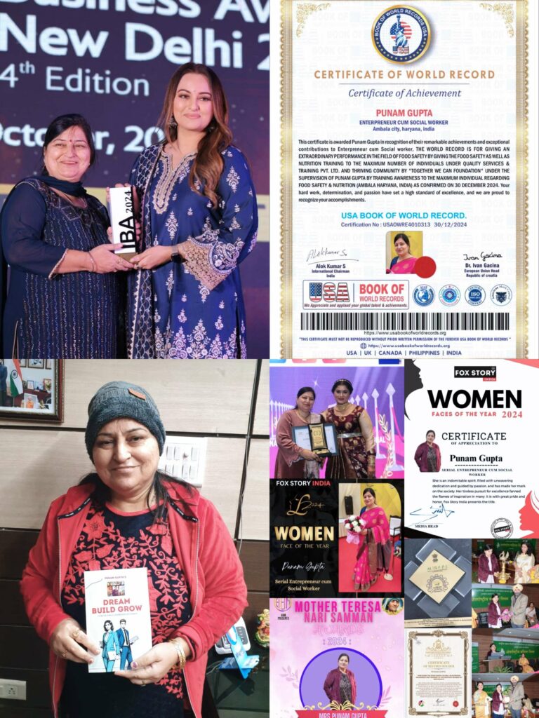 Also, She received Certificate of Excellence from RIISM (Research Institute in Indian Systems of Medicine), awarded by MOTHER TERESA NARI SAMMAN Awards for best contribution in Entrepreneurship and Social work, Also, certified as Women Faces of the Year 2024 by Fox Story India, Moreover, got honored by Director of NIFTEM, a venture of MOFPI on International Women Day, Received a certificate of Record holder for doing maximum trainings and awareness of Food Safety by Harvard World Records. Not only this, she also got Udyog Ratan Award For Start Up Immuno Life Private Limited by Famous dancer cum bollywood actress Ms. Sudha Chandaran. Recently she got a Certificate of World Record for extraordinary performance in the field of Food Safety by USA Book of World Record.