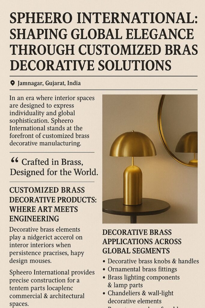 In the ever-evolving world of home décor and lighting design, customization has become the new benchmark of luxury. Today’s global buyers seek exclusivity, craftsmanship, and identity—qualities that cannot be mass-produced. Rising to this global demand, Spheero International stands at the forefront as a trusted manufacturer and exporter of Brass Customized Decorative Products, redefining artistic expression through metal.