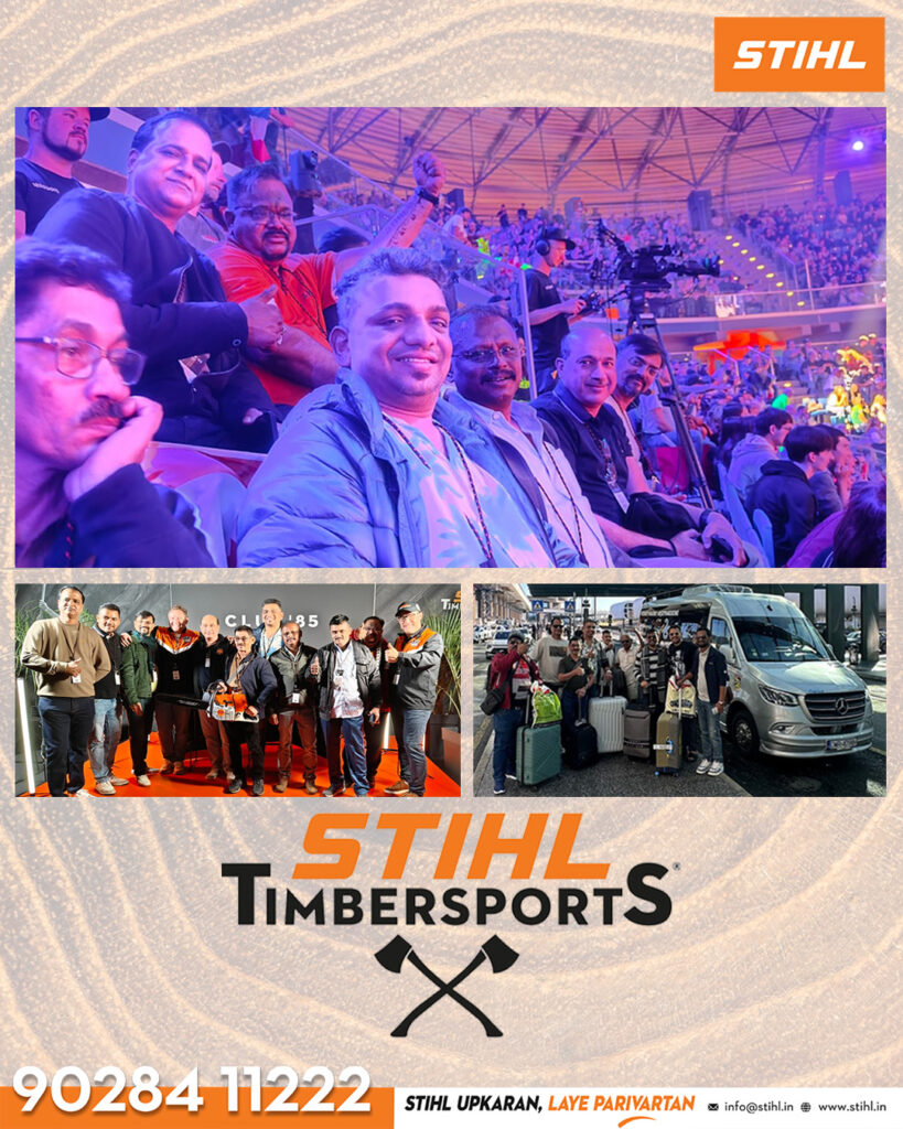 The championship, known globally as the pinnacle of competitive logging sports, brought together the finest athletes whose mastery of skill, grit, and precision echoes the very spirit of STIHL. From STIHL India, Mr. Parind Prabhudesai (Managing Director) and Mr. Raghavendra P.M. (Sales Director) were joined by select dealers and employees who continue to play a key role in expanding and strengthening the brand’s footprint across India.