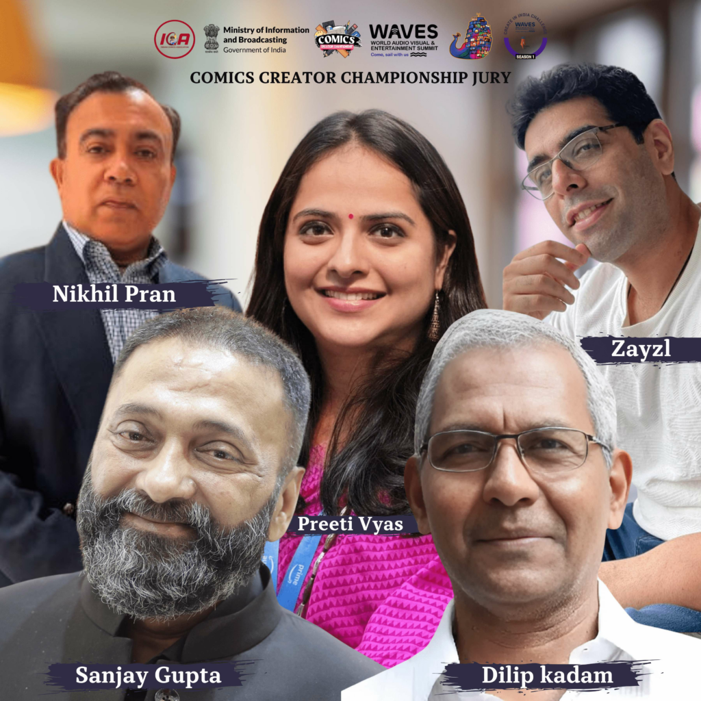 Preeti Vyas, President and CEO of Amar Chitra Katha, rounds out the panel with her extensive knowledge and experience in the content ecosystem. Vyas’s work has spanned multiple genres, from mythology to picture books to early chapter books. She has been a pioneer in promoting Indian comics globally through transmedia approaches. In her words: “I am honored and delighted to be part of the WAVES Comic Creator Championship jury. This contest will give a big boost to promote indie comic creators and create awareness and a market for our own stories and IP”.