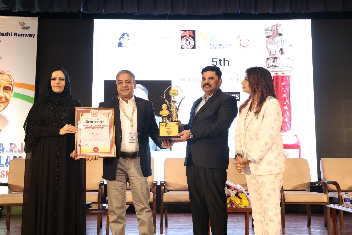 The award was presented by Hon’ble Dr. Arshi Ayub Zaveri, a distinguished global businesswoman and Powerwoman of Legacy, UAE. The platform pays tribute to visionary leaders who exemplify integrity, innovation, and impact across industries, in the spirit of India’s Missile Man and former President, Dr. A.P.J. Abdul Kalam.