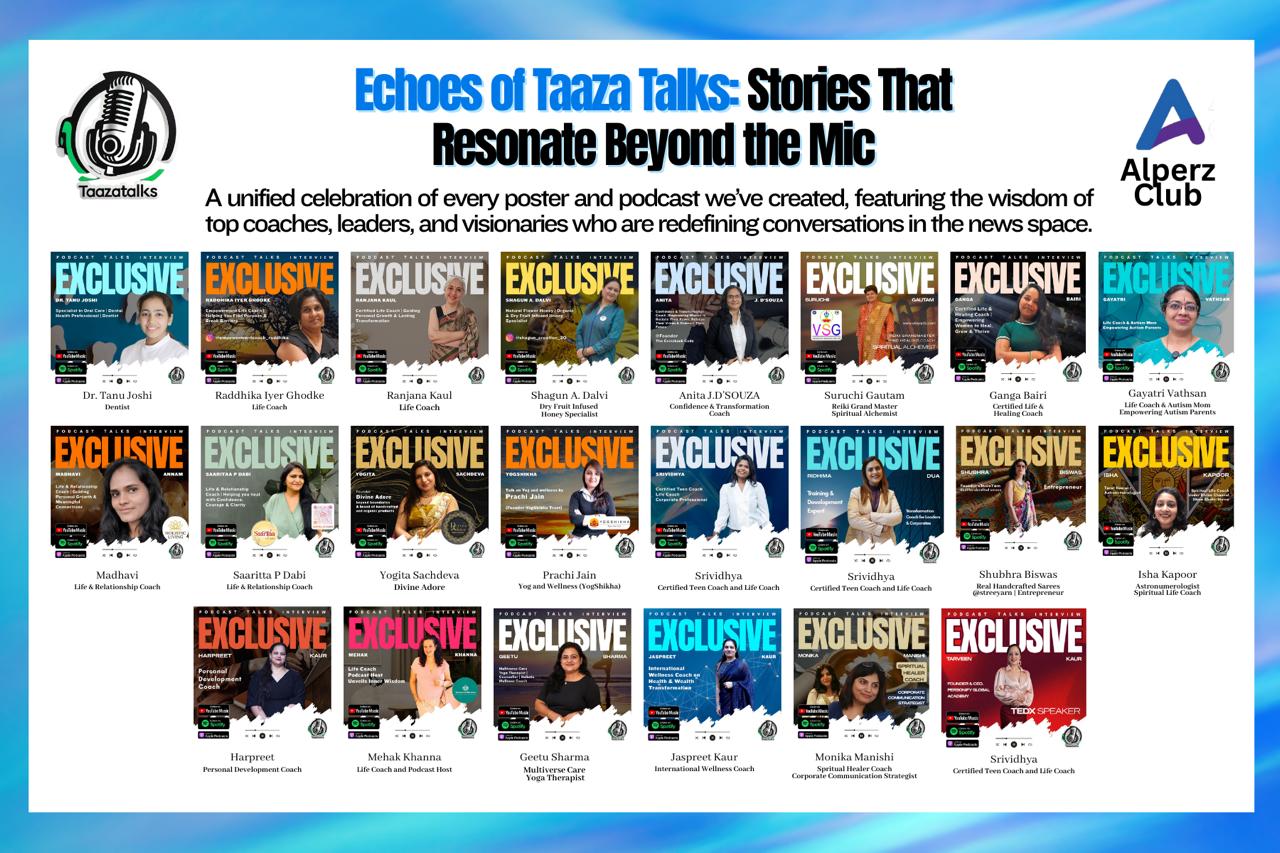 Taazatalks Media, in collaboration with Alperz Club, proudly presents its Spotify podcast series Echoes of Taaza Talks — a journey of stories, voices, and visions that are shaping new conversations. This platform is dedicated to highlighting the wisdom of top 100 coaches, leaders, healers, and visionaries, and from this mission, these inspiring names have already emerged as frontrunners.