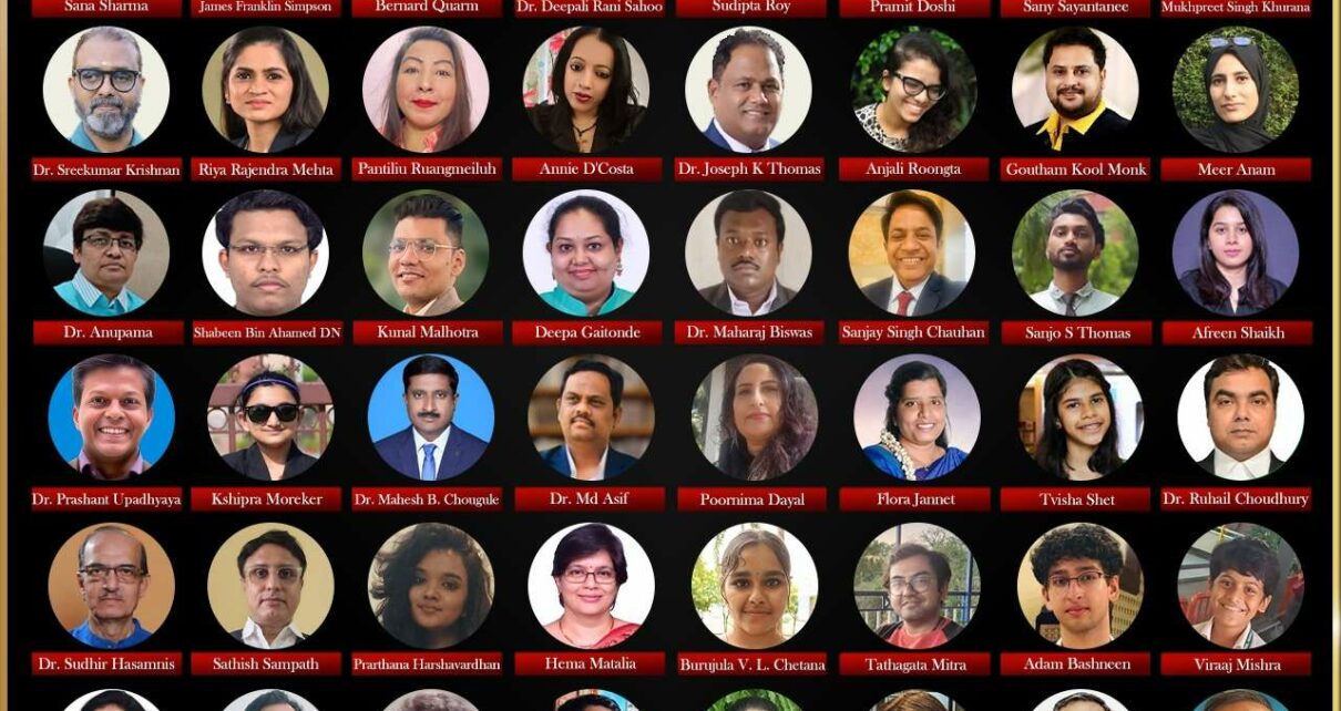 In the category of Poets, the awardees are Shivani Priyam for The Silent Lauder – Whirring Amusing Tales, Sany Sayantanee for My Pen Bleeds – A Light Keeps Burning, Mukhpreet Singh Khurana for Rubaru, Annie D’Costa for The Whispering Dreams Of Tamakwa, Shabeen Bin Ahamed DN for Rise and Fall in Mist Of Past, Kunal Malhotra for Adhvan – Zindegi ka safarnama, Poornima Dayal for 3 Sages, Dr. Dipa Mitra for Janani Janmabhumiścha: A Poetic Tribute to Mother & Motherland, Anu Menon for Priceless Moments, T. Jumpi Ete for I Live: Where the Shadow Falls, and Karishma Shingote for Verses from Ashes to Ink.