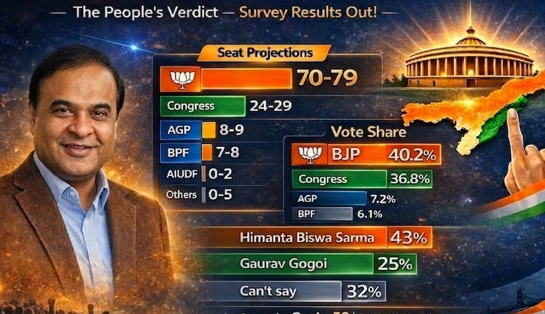 Genius30, an independent think-tank and data-analytics group, has officially released the comprehensive findings of its highly anticipated “Raijor Raai – The People’s Verdict” pre-poll survey. Leveraging a massive, tech-driven sample size of over 50,000+ verified respondents across all 126 assembly constituencies, the extensive data audit projects a decisive mandate for the BJP-led NDA alliance in the upcoming Assam elections.