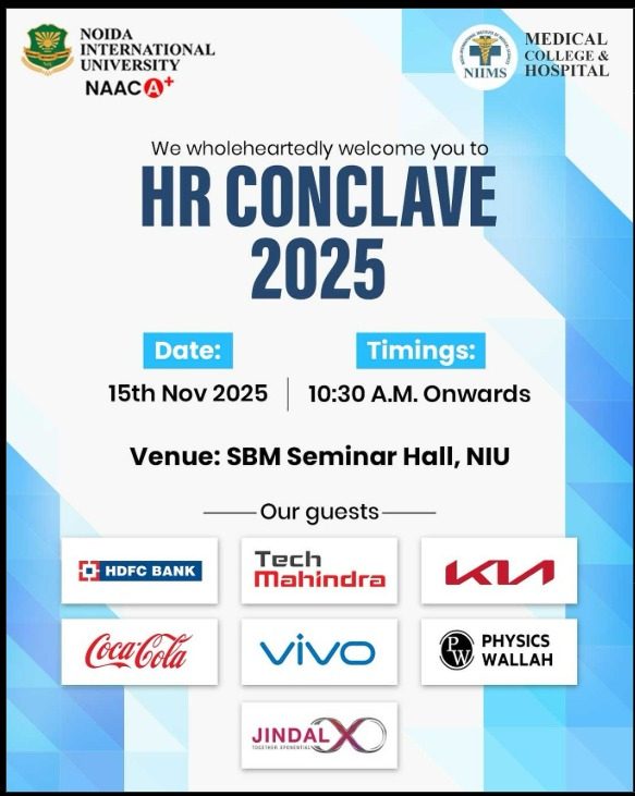 Noida, 17 November 2025: Noida International University (NIU), through its Placement Department, successfully organized the HR Conclave 2025 in the university’s Seminar Hall, bringing together leading HR professionals, industry visionaries, academicians, and students to explore the evolving landscape of human capital.