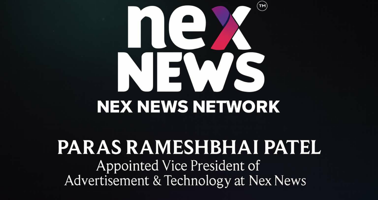 Mumbai, India – In a decisive step aimed at strengthening its advertising and technology backbone, Nex News Network, the flagship division of Shivaksh Media Group, has announced the appointment of PARAS RAMESHBHAI PATEL as the new Vice President of Advertisement & Technology. The move reflects the company’s focus on building a future-ready media ecosystem driven by transparency, innovation, and advanced digital solutions.