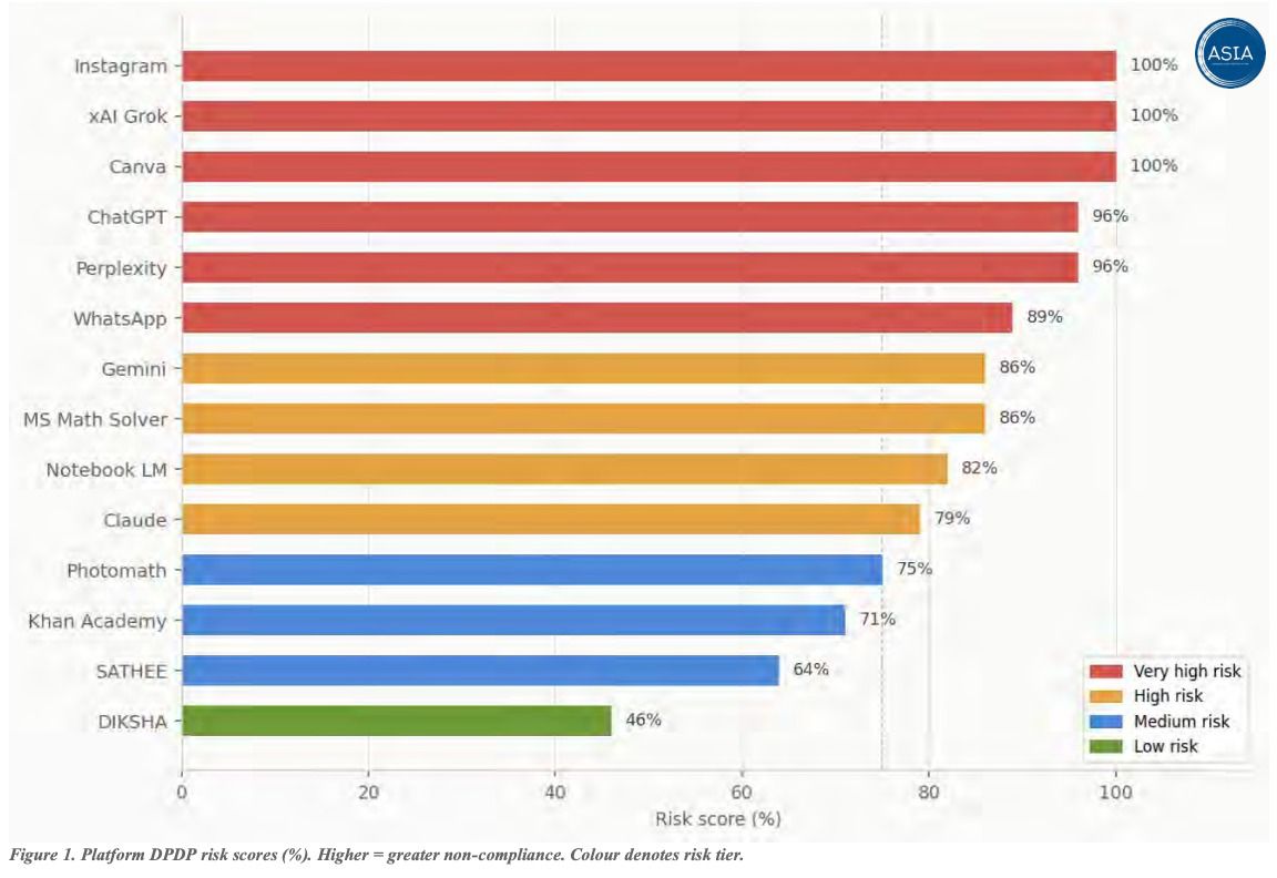 The study analysed 14 widely used AI platforms, including government-backed educational tools such as DIKSHA and SATHEE, as well as global services like ChatGPT, Khan Academy, WhatsApp, and Instagram. The findings reveal that over 70% of key compliance requirements are currently unmet—particularly in areas such as verifiable parental consent, robust age verification, and child-sensitive data practices.