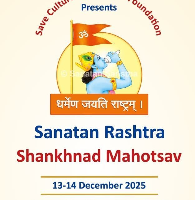 New Delhi: The Save Culture Save Bharat Foundation, in collaboration with Sanatan Sanstha, has announced that the Shankhnad Mahotsav will be held on December 13 and 14 at Bharat Mandapam, Pragati Maidan. The event is part of Sanatan Sanstha’s Silver Jubilee celebrations and aims to highlight India’s cultural and spiritual traditions.